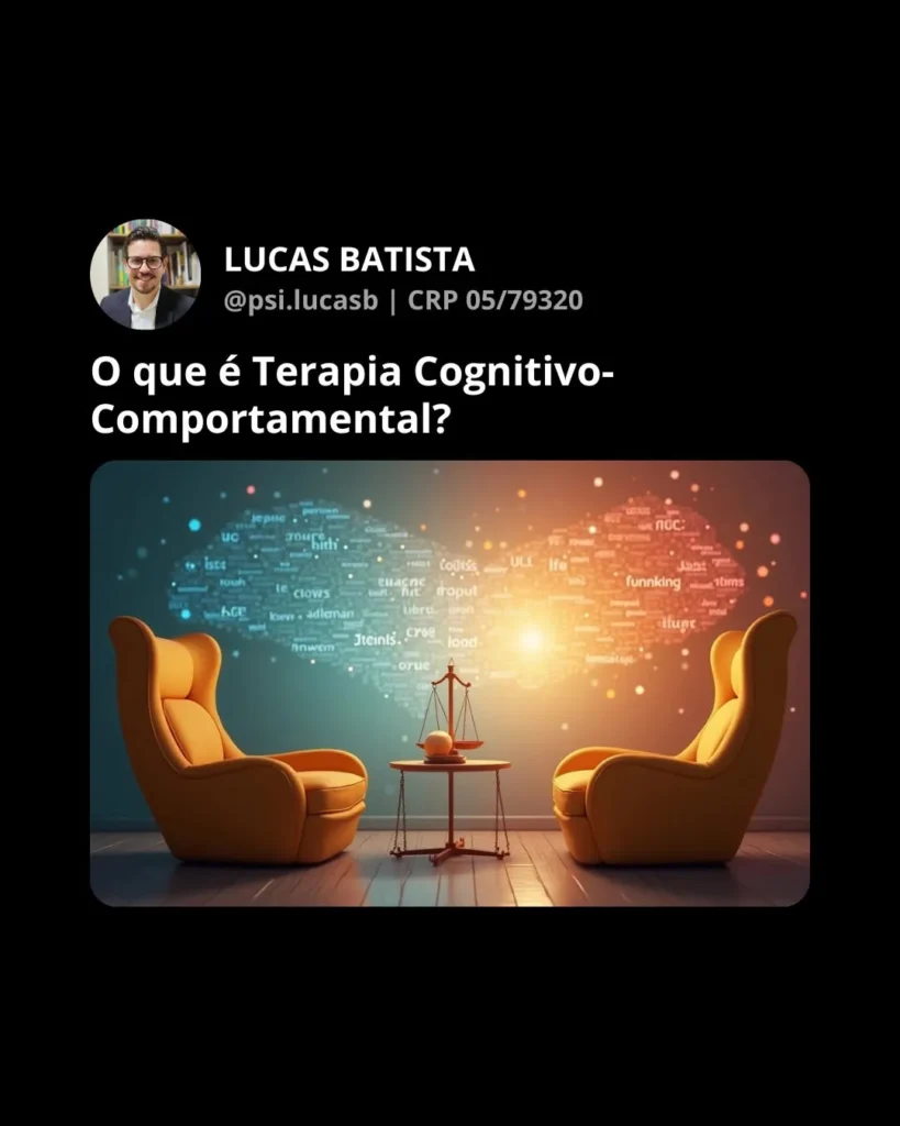 Olá! Eu sou o Lucas Batista de Souza, psicólogo pós-graduando em Terapia Cognitivo-Comportamental e Práticas Baseadas em Evidências, com atendimento 100% online para adultos. Ajudo pessoas que sofrem com ansiedade, autoestima e dificuldades emocionais a se reconectarem com sua força interna e encontrarem caminhos mais saudáveis de viver.